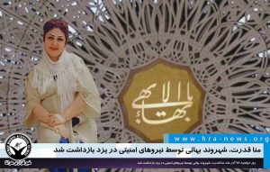 روز دوشنبه ۲۸ آذر ماه، منا قدرت، شهروند بهائی توسط نیروهای امنیتی در یزد بازداشت شد.