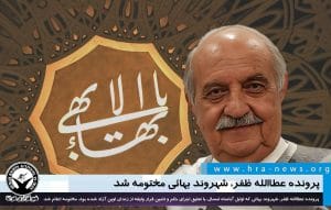 به گزارش خبرگزاری هرانا، ارگان خبری مجموعه فعالان حقوق بشر در ایران، پرونده عطاالله ظفر، شهروند بهائی مختومه شد.
