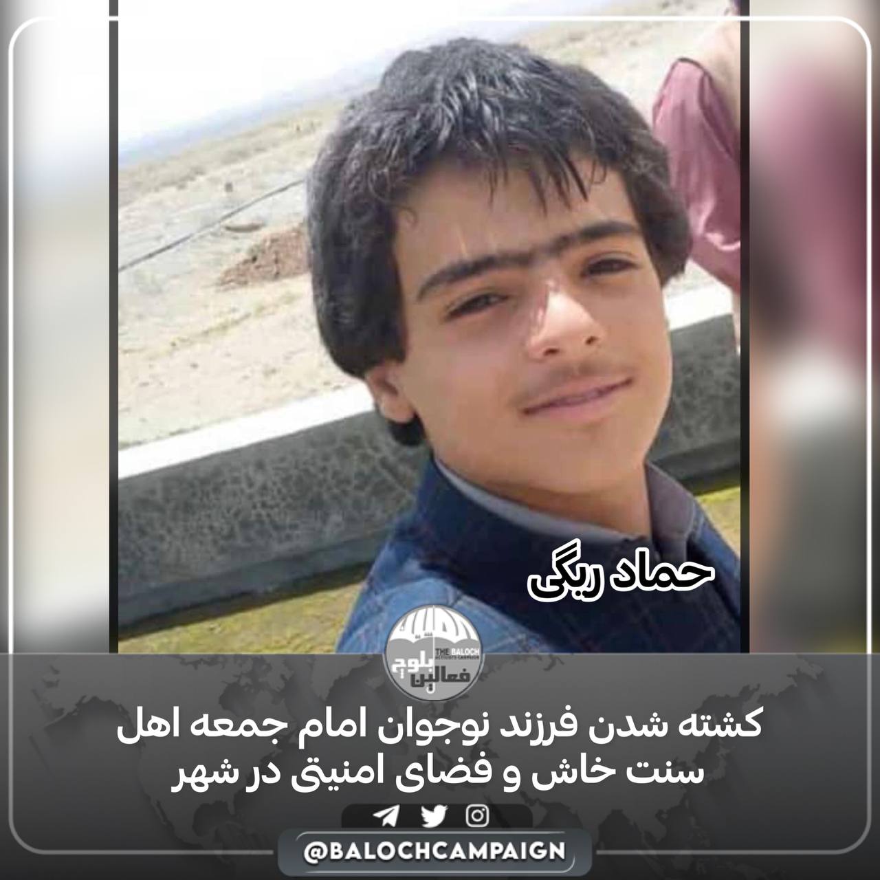 به گزارش کمپین فعالین بلوچ، روز جاری ۲۲ اردیبهشت ماه ۱۴۰۲، حماد قلندرزهی فرزند ۱۶ ساله مولوی محمد عثمان قلندرزهی در روستای سرتلاپ شهرستان خاش به ضرب گلوله افراد مسلح ناشناس کشته شد.