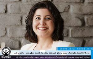 سارا ثابت راسخ، شهروند بهائی ساکن اصفهان که از تاریخ هجدهم بهمن ماه سال گذشته دوران محکومیت یک ساله خود را تحت نظارت پابند الکترونیکی در خارج از زندان و با محدودیت تردد سپری میکند، توسط شعبه هفدهم دادگاه تجدیدنظر استان اصفهان، به هشت سال حبس محکوم شد. با اعمال ماده ۱۳۴ مجازات اسلامی، پنج سال حبس برای او قابل اجرا است.