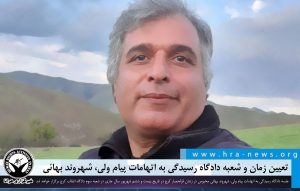 به گزارش خبرگزاری هرانا، ارگان خبری مجموعه فعالان حقوق بشر در ایران، زمان و شعبه دادگاه رسیدگی به اتهامات پیام ولی، شهروند بهائی تعیین شد.