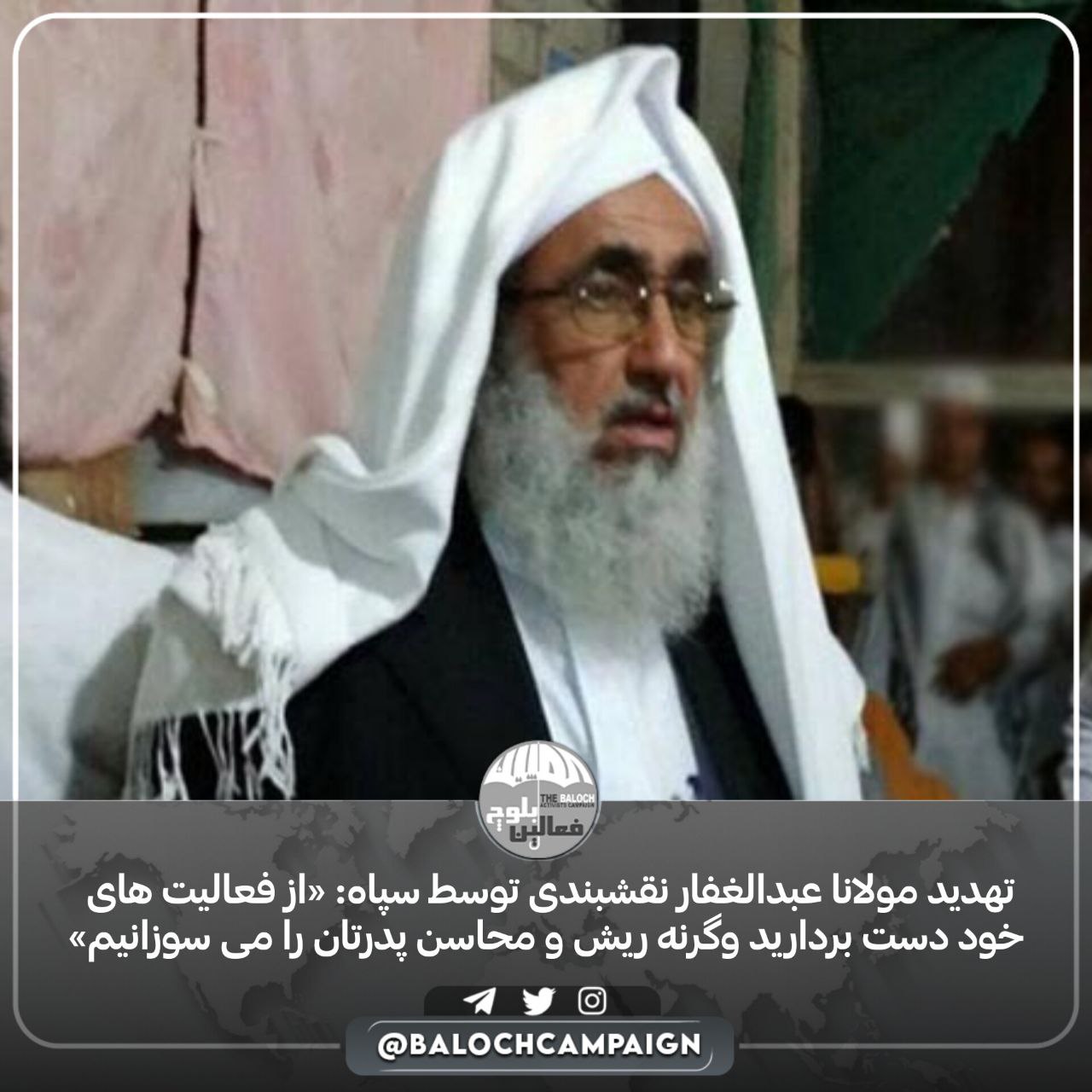 سپاه پاسداران سیستان و بلوچستان طی ارتباط تلفنی با مدیر روابط عمومی مولانا عبدالغفار، وی را تهدید به سوزاندن ریش و محاسن مولوی فتحی محمد نقشبندی کرد.