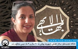 یک منبع نزدیک به خانواده این شهروند به هرانا گفت: “جلسه دادگاه تجدیدنظر وی روز پنجشنبه سیزدهم مهر بدون اطلاع خانم تفضلی و وکلای وی برگزار شد. قضات دادگاه حکم بدوی را تایید کردند و این رای به این زندانی بهائی ابلاغ شده است.”