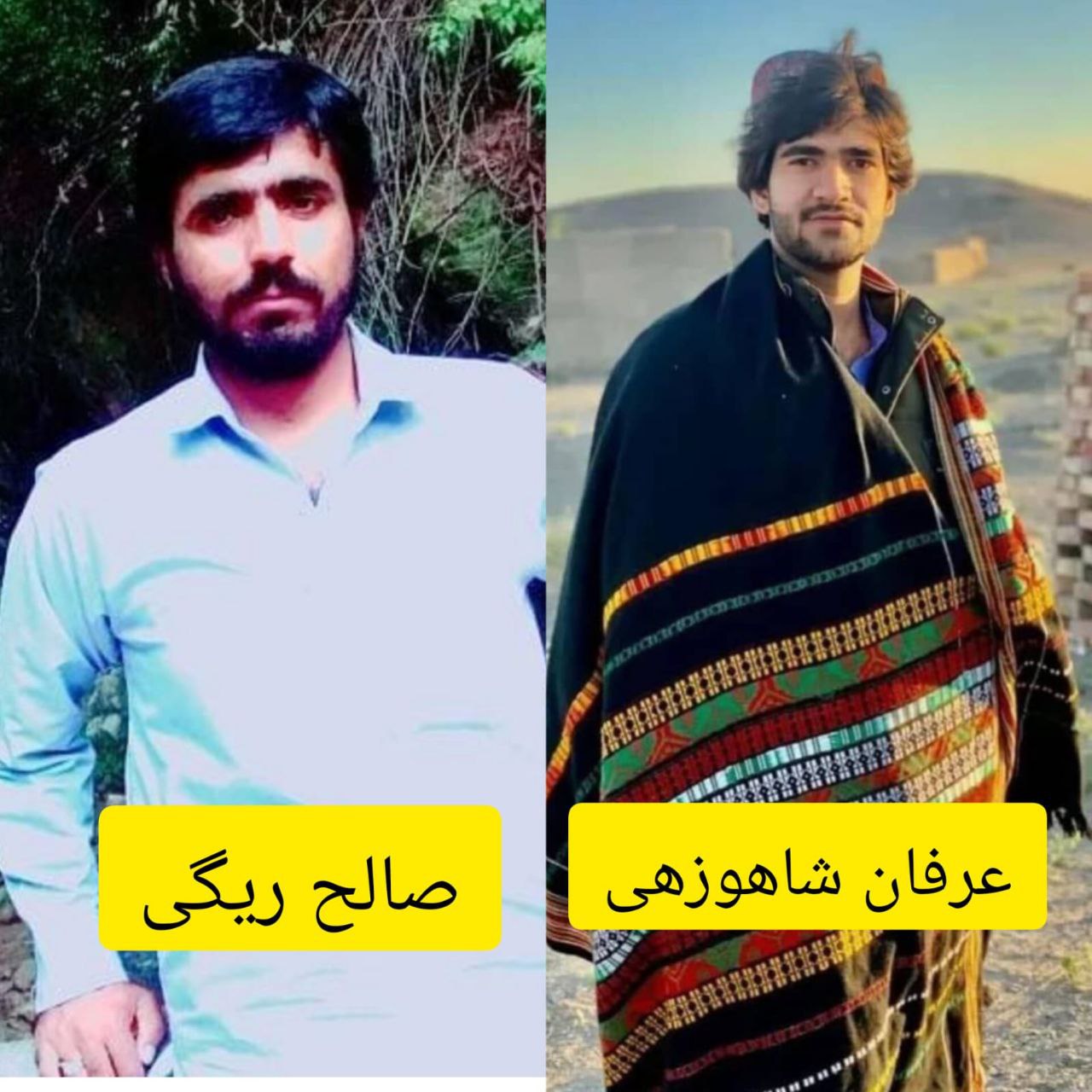 هویت دو نفر از این شهروندان بلوچ، “صالح ریگی”، ٣٢ ساله، فرزند غلام ، “عرفان شاهوزهی”، هر دو اهل زاهدان عنوان شده است.