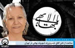 به گزارش خبرگزاری هرانا، ارگان خبری مجموعه فعالان حقوق بشر در ایران، مسئولان از دفن یک شهروند بهائی ساکن تهران به نام “آفاق خسروی زند” که در تاریخ یکم آذرماه فوت کرده بود جلوگیری کردند.