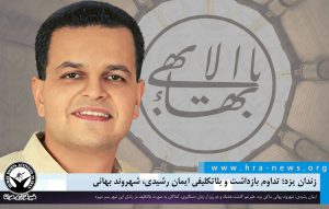 به گزارش خبرگزاری هرانا، ارگان خبری مجموعه فعالان حقوق بشر در ایران، ایمان رشیدی، شهروند بهائی ساکن یزد در بازداشت بسر میبرد.