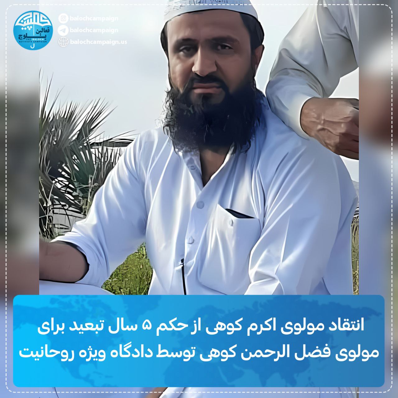 مولوی محمداکرم کوهی نسبت به حکم ۵ سال تبعید مولوی فضل الرحمن انتقاد کرد و آن را مخالف آزادی بیان دانست.