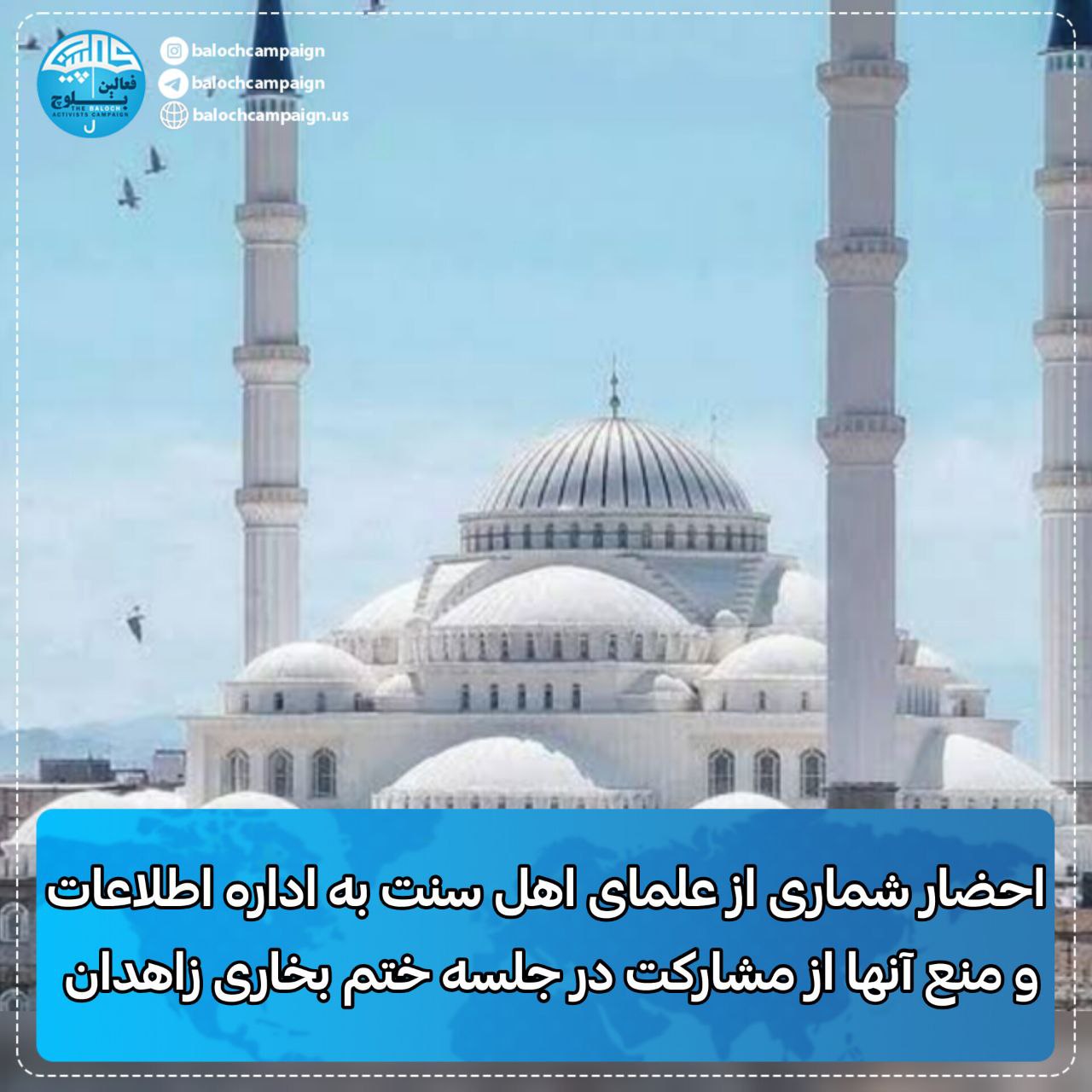 در این گزارش به نقل از یک منبع مطلع آمده، ماموران اداره اطلاعات در تماس با مولوی «عبدالوهاب بزرگزاده» مدیر مدرسه دینی عزیزیه انزاء، مولوی «محمد امین آسکانی» مدیر داخلی مدرسه دینی انوارالحرمین پشامگ، مولوی «دوست محمد رئیسی» امام جمعه نصیرآباد سرباز و چند تن دیگر از علمای سرباز و راسک، آنها را از مشارکت در جلسه ختم بخاری دارالعلوم مکی زاهدان منع کردند.