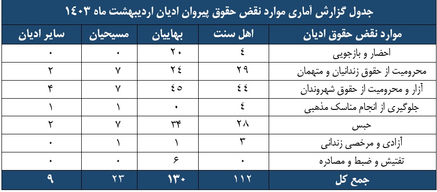 این گزارشات از سایت کمیته دفاع از حقوق پیروان ادیان که از رسانههای داخلی و خارجی مانند ایسنا، هرانا، ایسنا، ایرنا، ایلنا، هنر آنلاین، باشگاه خبرنگاران جوان، خبرگزاری فارس، کیهان، همشهری آنلاین، اردیبهشتنیوز، سازمان ماده 18، کردپرس، کردپا، کمپین فعالین بلوچ، ههنگاو، بیبیسی فارسی، جمعآوری گردیده، تهیه شده است.