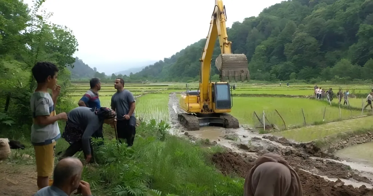 در جریان این حمله، یک بیل مکانیکی بزرگ اقدام به حرکت رفت و برگشت بر روی شالیها کرده و آنها را تخریب نمود سپس به سمت رودخانه رفته و معبر آب رودخانه به شالیزارها را از بین میبرد.