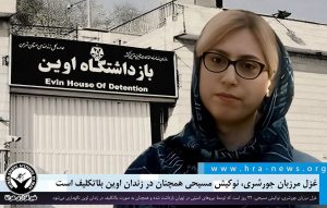 خبرگزاری هرانا – غزل مرزبان جورشری، نوکیش مسیحی، ۲۲ روز است که توسط نیروهای امنیتی در تهران بازداشت شده و همچنان به صورت بلاتکلیف در زندان اوین نگهداری میشود.