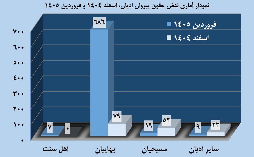 گزارش آماری نقض حقوق پیروان ادیان، فروردینماه 1405