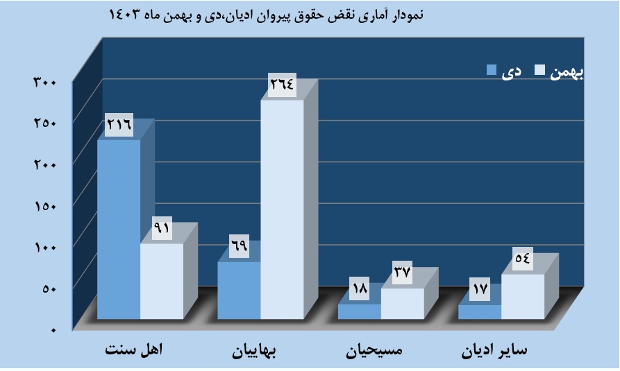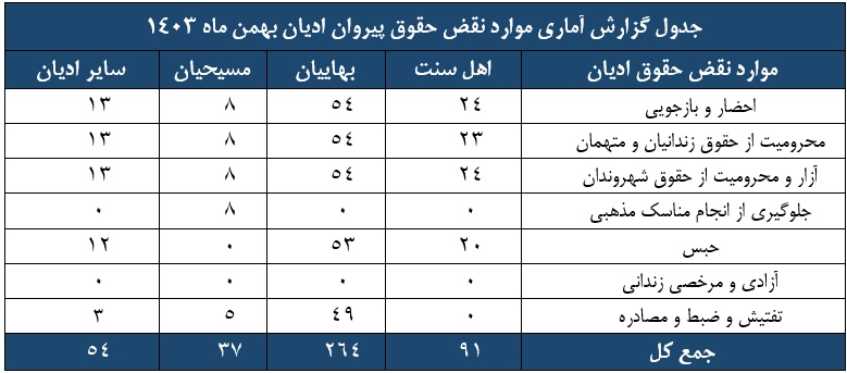گزارش آماری نقض حقوق پیروان ادیان، بهمن ماه 1403