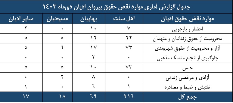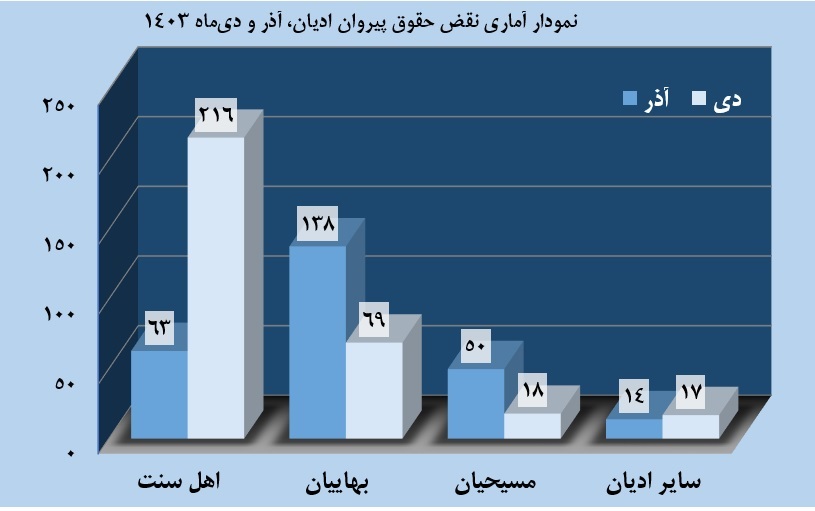 گزارش آماری نقض حقوق پیروان ادیان، دی ماه 1403