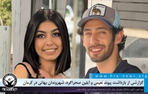 خبرگزاری هرانا – پیوند نعیمی و آیلین صحراگرد، شهروندان بهائی ساکن کرمان توسط نیروهای امنیتی بازداشت شدند. خانم صحرا گرد به زندان این شهرستان منتقل شده است و از محل نگهداری آقای نعیمی تاکنون اطلاعی کسب نشده است.